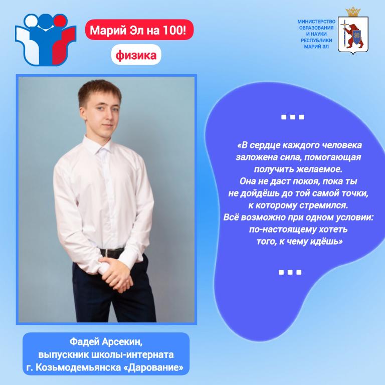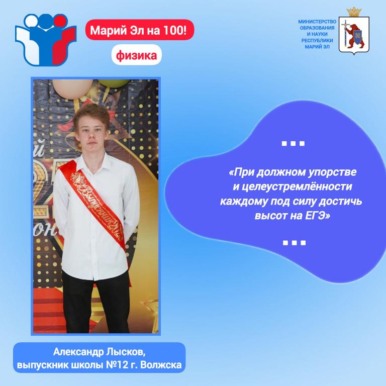 Отличные результаты показали выпускники Многопрофильного лицея-интерната, лицея-интерната посёлка Ургакш, школы-интерната «Дарование», школ в Волжске и Йошкар-Оле, лицея «Мегатех» и Политехнического лицея-интерната.