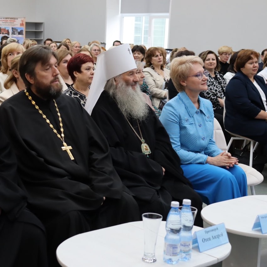 Во Дворце молодёжи собрались ветераны педагогического труда, молодые учителя, работники общеобразовательных и дошкольных учреждений, представители духовенства и профильных органов власти.