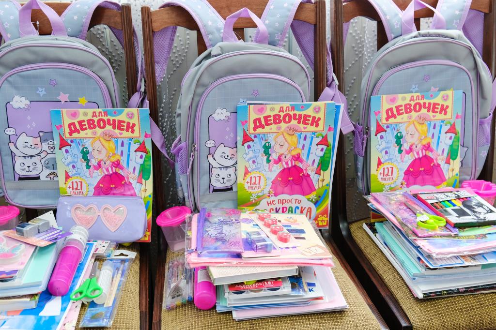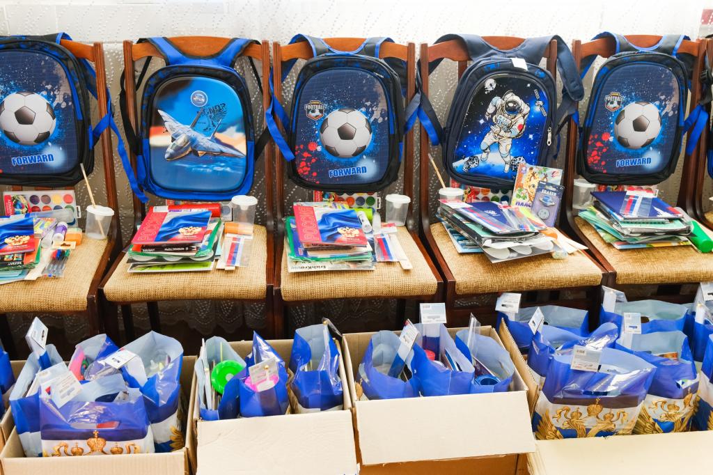 На эти деньги закуплены новые рюкзаки и полные наборы канцелярских принадлежностей.