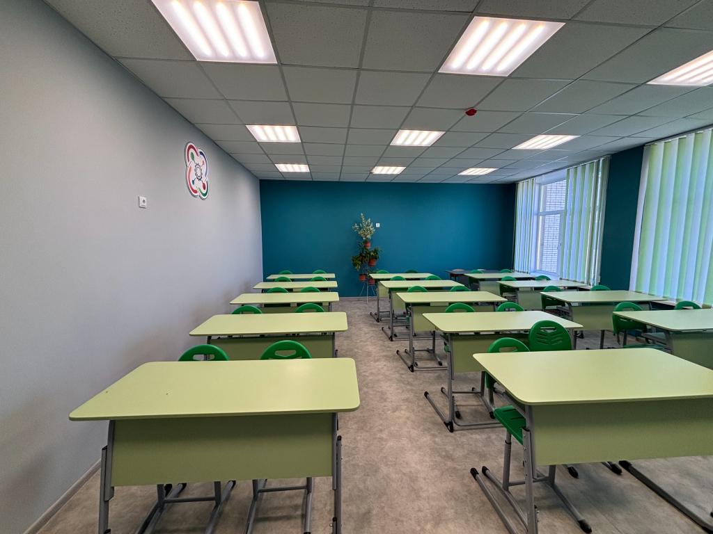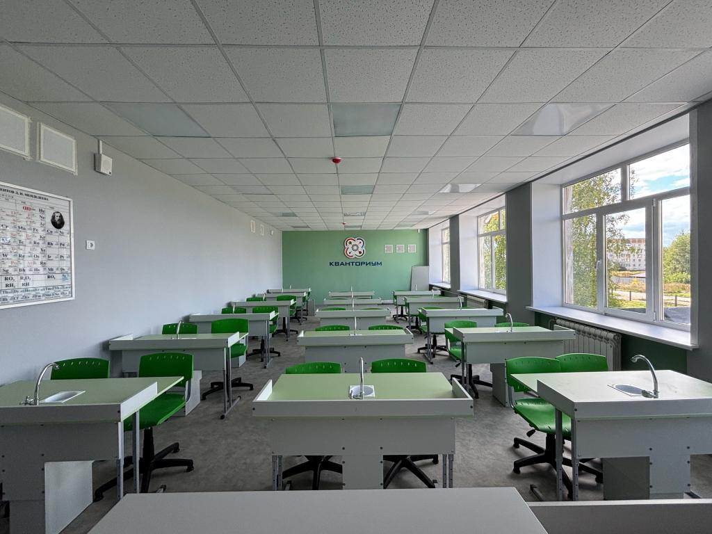 Обновлены классы, вестибюли, пищеблоки, библиотеки и актовые залы. Для кабинетов химии, биологии, физики и медицинских блоков закуплено новое оборудование. Библиотеки, столовые, актовые и спортивные залы оснащены современной мебелью и техникой.