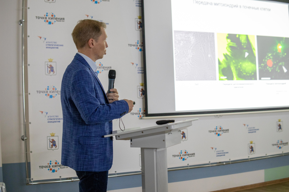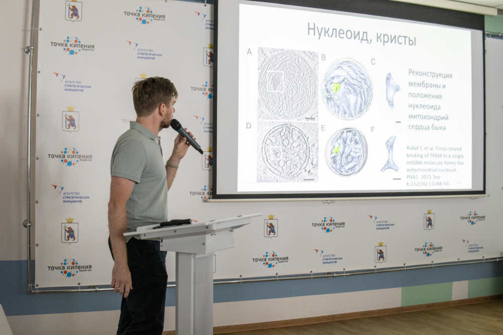 Программа второго дня была не менее насыщенной. С докладами выступили профессор Борис Стивович Шенкман (ИМБП РАН) об энергосенсорных механизмах в мышцах, Егор Александрович Туровский (ИБК РАН) о наночастицах селена для лечения рака, Семен Валерьевич Нестеров (НИЦ «Курчатовский институт») о возможностях криоэлектронной микроскопии для изучения митохондрий. Профессор РАН Егор Юрьевич Плотников (МГУ) рассказал о передовых исследованиях в области межклеточного транспорта и трансплантации митохондрий, а Роман Сергеевич Фадеев (ИТЭБ РАН) — о связи митохондрий, воспаления и онкологических заболеваний.