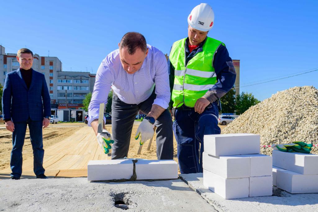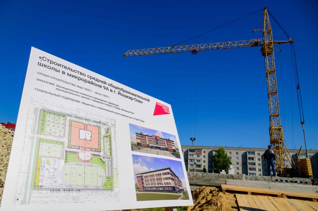 В микрорайоне 9 «А» в Йошкар-Оле началось строительство новой школы. На месте стройки побывал глава Марий Эл. Он заложил первый камень в основание образовательного учреждения и пожелал строителям завершить объект в установленные сроки.