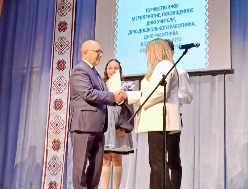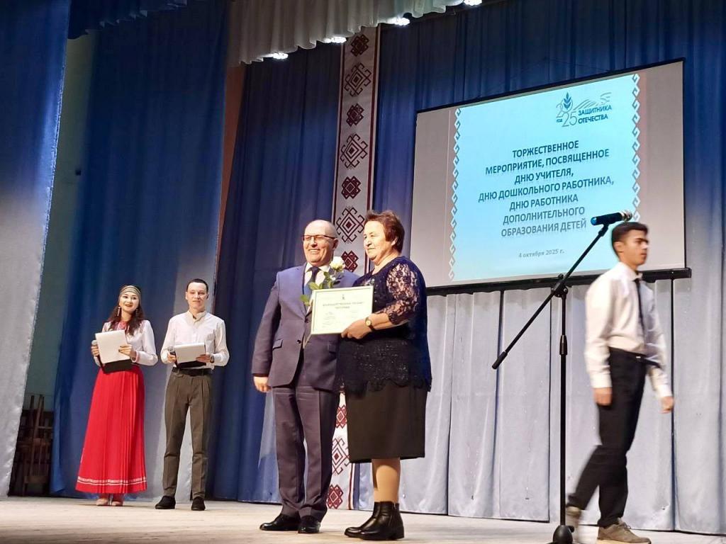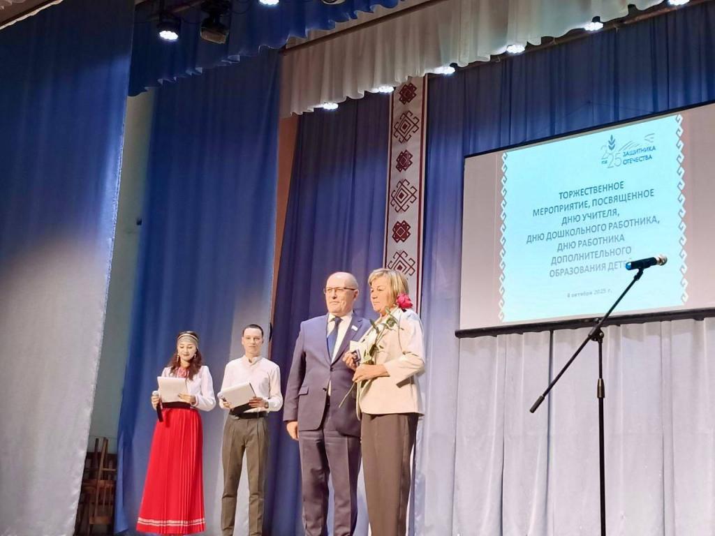 Позже в местном ДК руководитель марийского парламента встретился с педагогическим сообществом Горномарийского района. Он поздравил учителей с профессиональным праздником и вручил заслуженные награды.