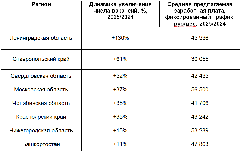 В числе других регионов-лидеров по приросту числа вакансий для репетиторов английского — Ставропольский край (+61%) и Свердловская область (+52%). Уровень зарплатных предложений в этих регионах составил 30 055 руб/мес и 42 495 руб/мес соответственно.