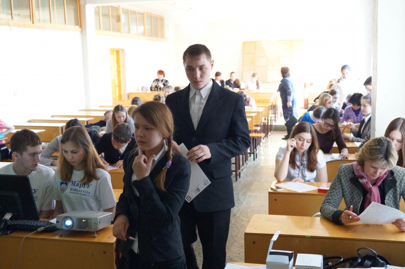 МариМедиа, 12 апреля. Интеллектуальный флеш-моб «Тотальный диктант» собрал 1147 человек, которые в 15:00 дружно сели за парты 21 аудитории МарГУ.