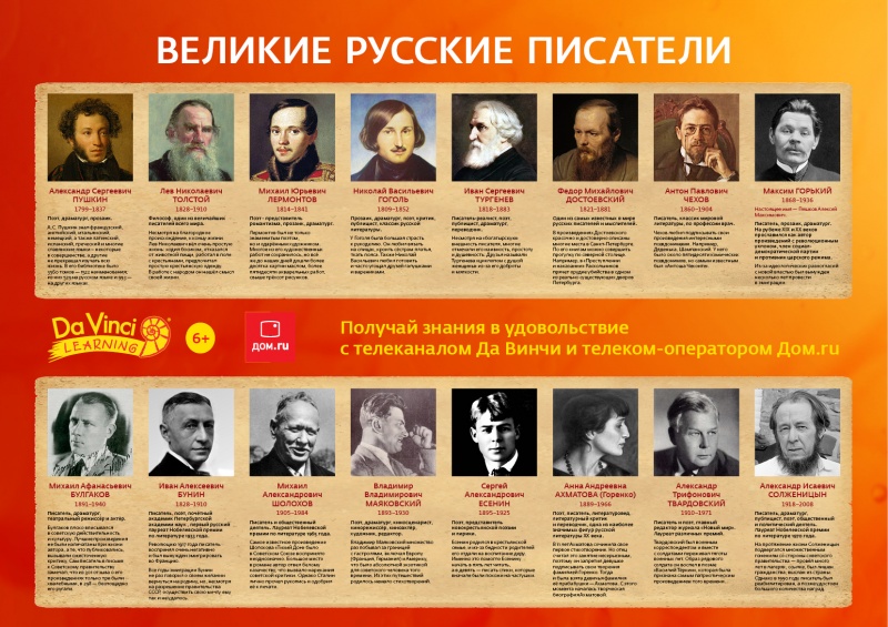 Плакаты помогут педагогам в процессе обучения и расширят кругозор школьников. Фотопортреты и портреты великих русских писателей, выполненные известными художниками, дополняются полезной информацией об их творчестве. А современный вариант периодической системы химических элементов Менделеева будет полезен всем, кто изучает химию и физику, или просто интересуется наукой. В таблицу внесены характеристики всех известных на сегодняшний день элементов.