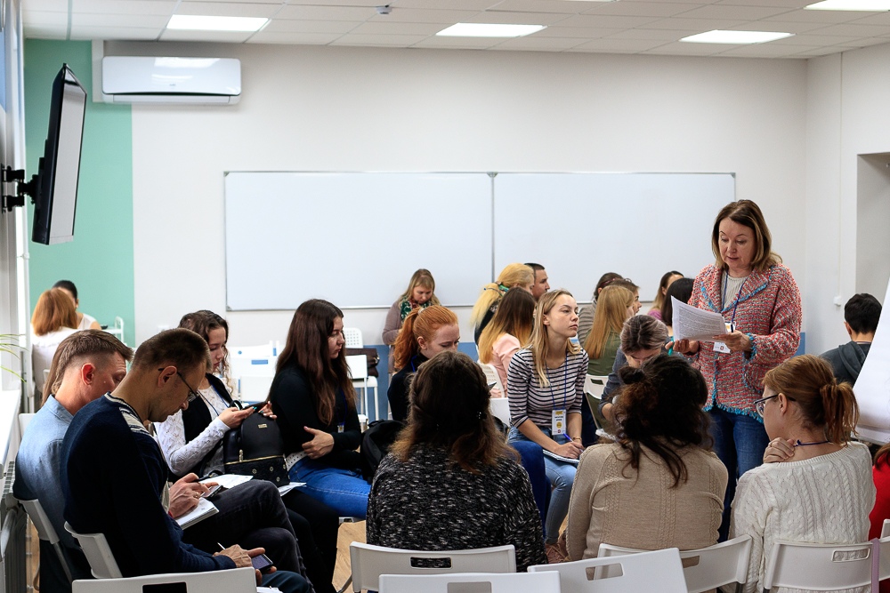 Наставников ожидали самые разные форматы работы: практикумы, лекции, групповые штурмы, рефлексии и пленарные заседания. С утра и до вечера с небольшими перерывами участники узнавали, как заинтересовать школьников и студентов проектной деятельностью. Словом, полностью погрузились в логику работы с проектами.