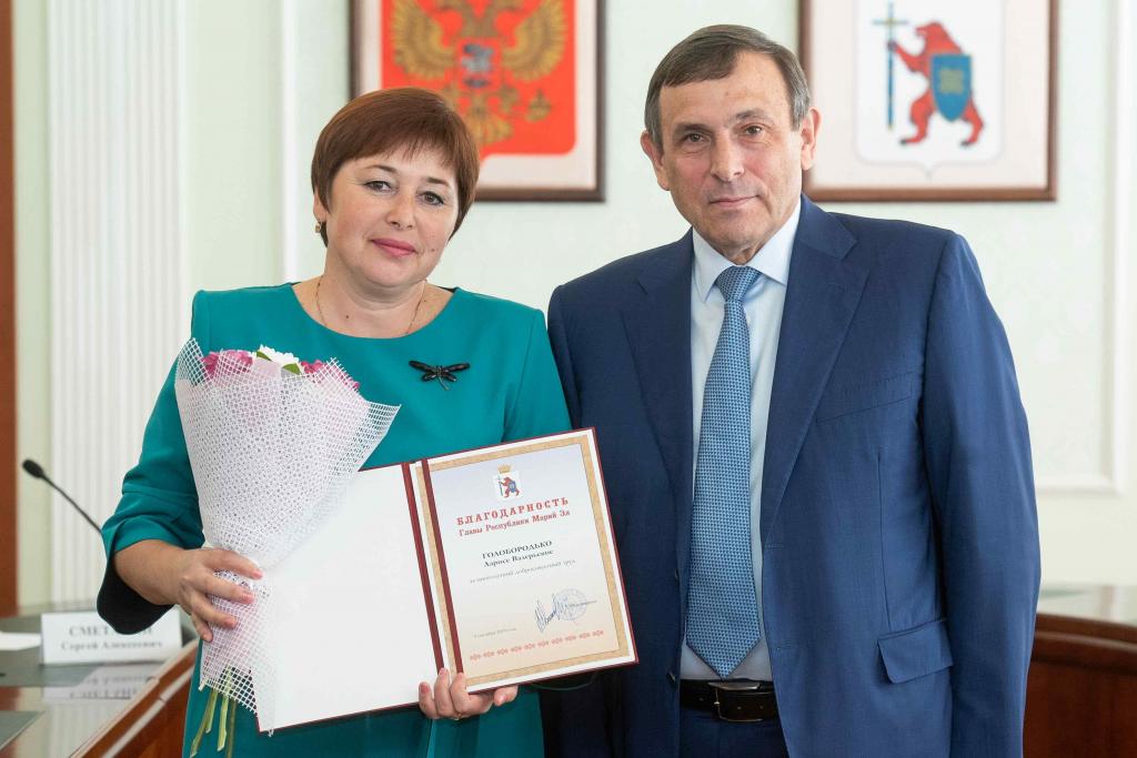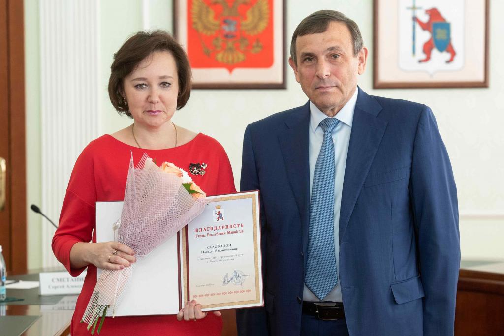 Благодарность Главы Республики Марий Эл объявлена учителю средней общеобразовательной школы № 21 с. Семёновка г. Йошкар-Олы Оксане Васениной, воспитателю Медведевского детского сада № 2 «Солнышко» Ларисе Голобородько, учителю вечерней общеобразовательной школы № 4 г. Йошкар-Олы Наталье Садовиной, учителю Семеновской школы-интерната Йошкар-Олы Юрию Сельдюкову, заведующему кафедрой Марийского государственного университета Елене Карташовой.