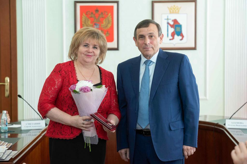 Затем отличившимся педагогам республики были вручены заслуженные награды. Почетное звание «Заслуженный работник образования Республики Марий Эл» присвоено старшему воспитателю детского сада № 65 г. Йошкар-Олы «Незабудка» Татьяне Дьяконовой, учителю гимназии № 14 г. Йошкар-Олы Елене Земсковой и учителю Моркинской средней общеобразовательной школы № 6 Надежде Михайловой.