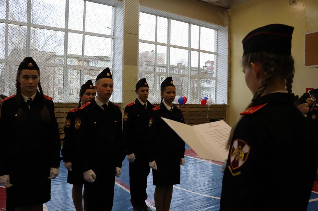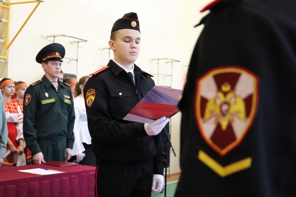 С неподдельной гордостью и честью юные росгвардейцы продемонстрировали чёткое выполнение всех воинских ритуалов торжественной клятвы и с особой ответственностью произнесли важную в их жизни клятву кадета, а старшие наставники Росгвардии вручили им удостоверение кадетов. Теперь, помимо школьных предметов, ребята будут заниматься строевой, огневой и физической подготовкой, изучением традиций подразделений Росгвардии и отечественной военной истории.