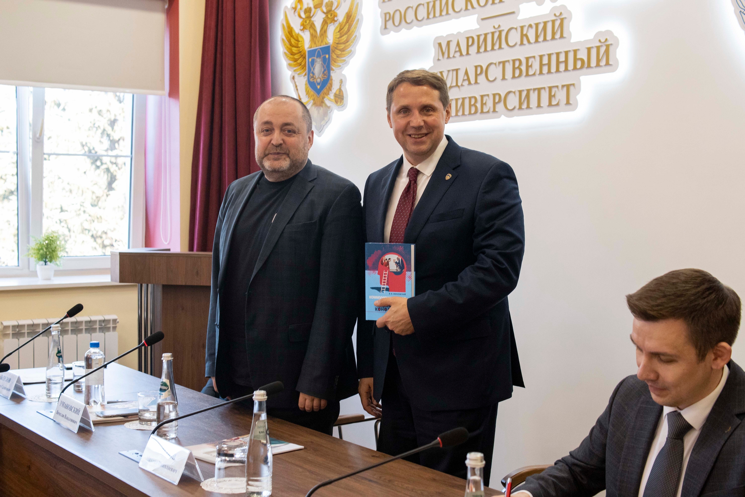 На встрече присутствовали ректор МарГУ Михаил Швецов, студенты и преподаватели, а также специальный гость — Николай Любимов, заместитель министра культуры, печати и по делам национальностей Республики Марий Эл, выпускник ИНКиМК МарГУ.