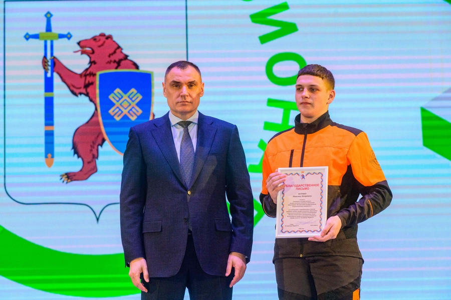 За плодотворное сотрудничество в области развития среднего профессионального образования и высокие результаты в компетенции «Мастер лесного дела» благодарственные письма главы Марий Эл вручены белорусским гостям — студентам Максиму Мурину и Антону Четырбоку.