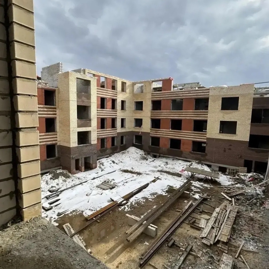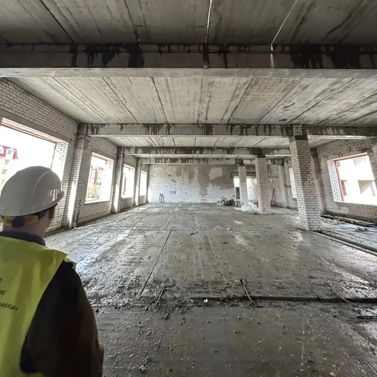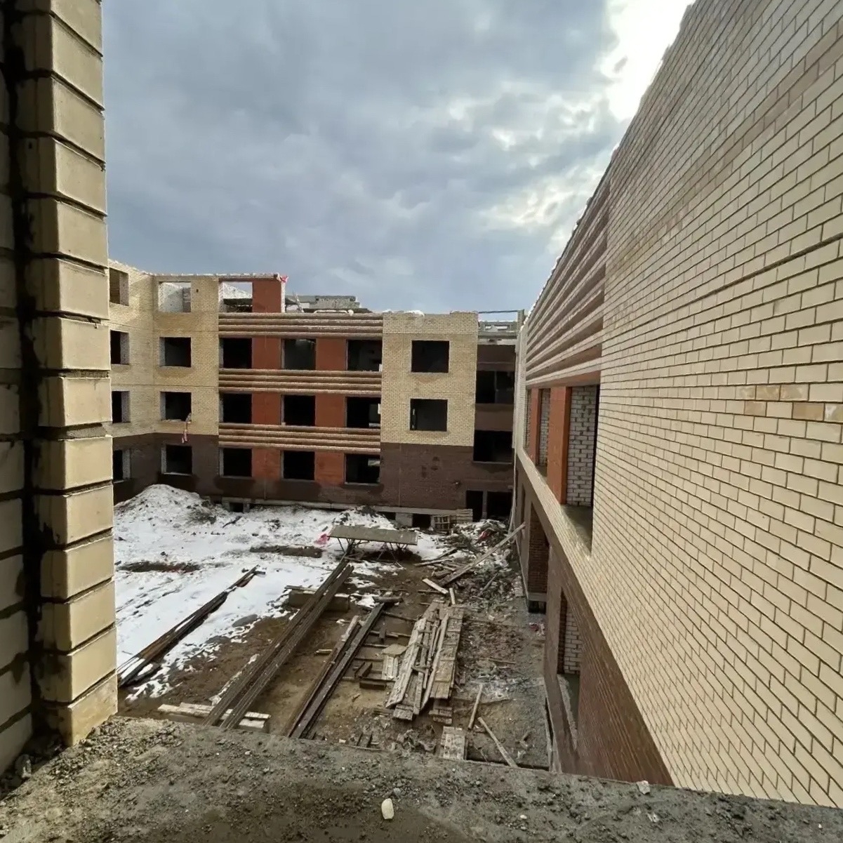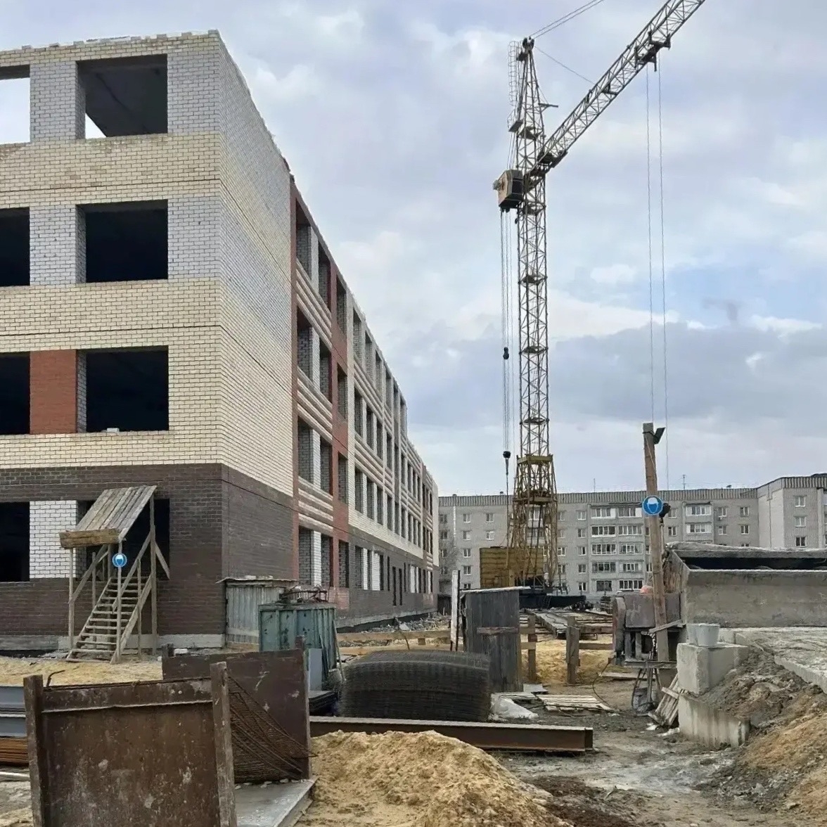 Здание «растёт» этаж за этажом. Внутри уже вырисовываются будущие классы и коридоры.