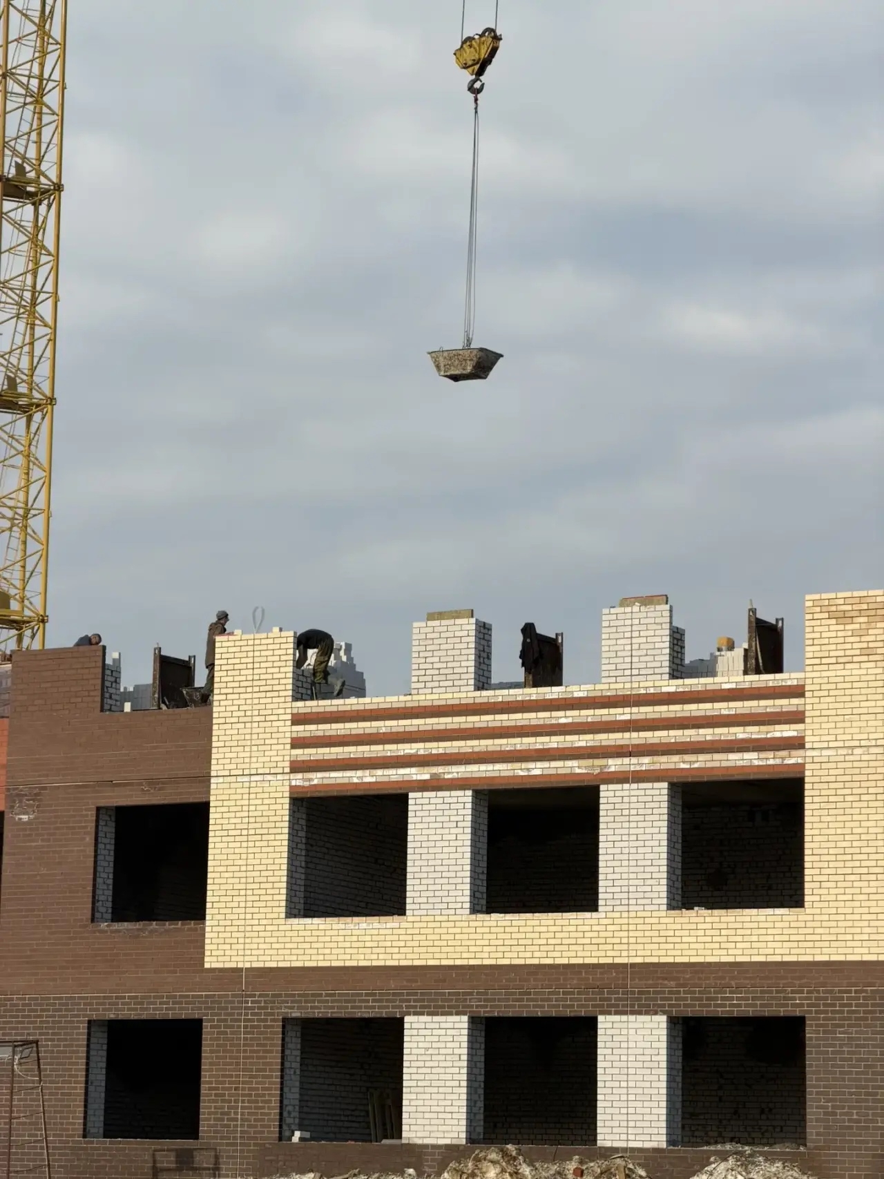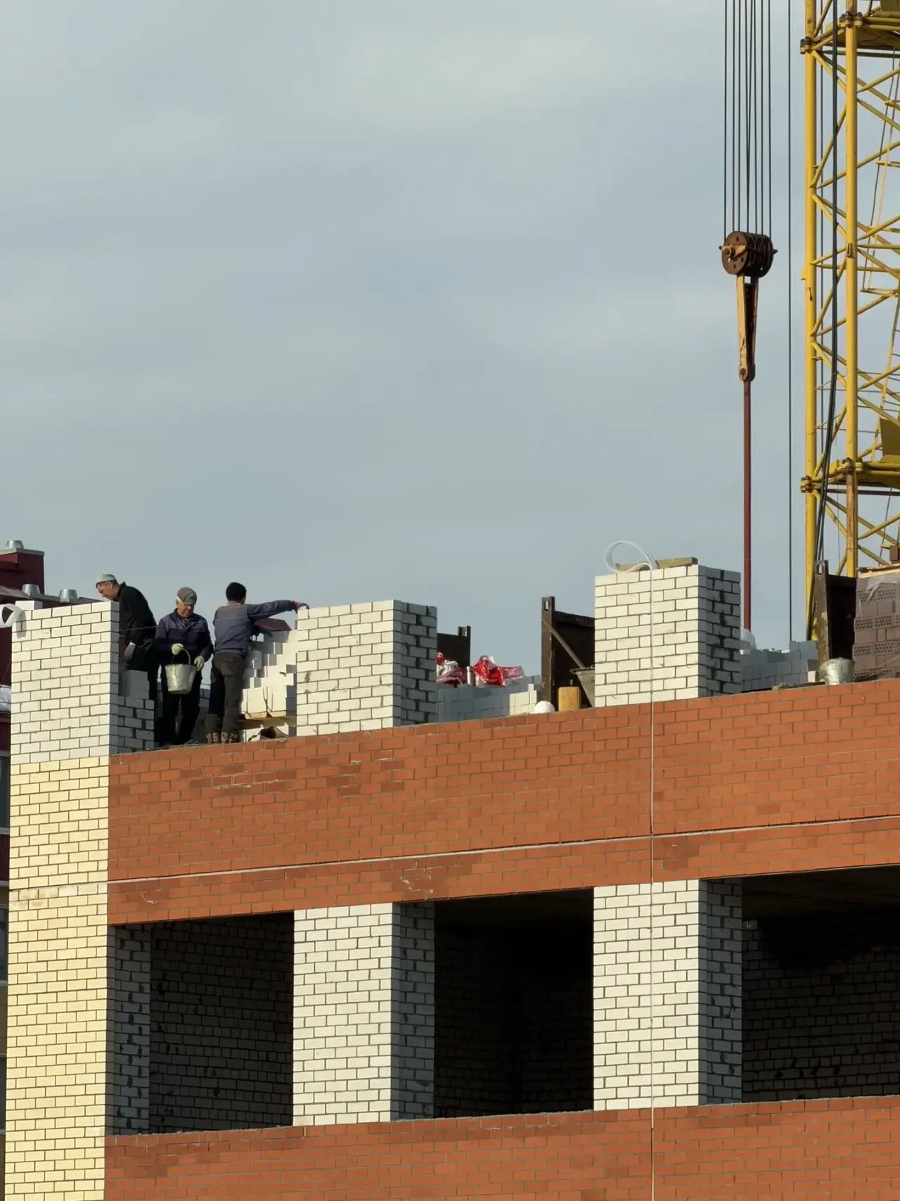 Строители уже приступили к кладке стен третьего этажа.