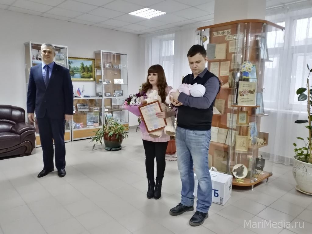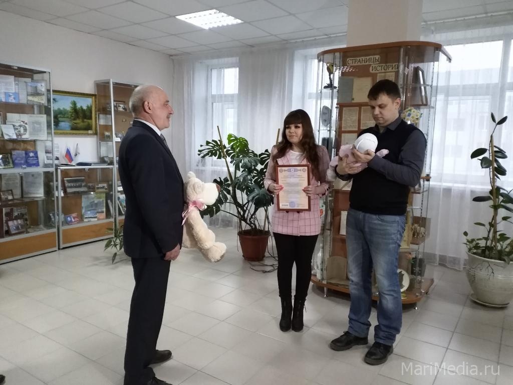Сегодня в Отделении ПФР по Республике Марий Эл состоялось торжественное вручение первого сертификата на материнский (семейный) капитал на первенца семье Храмковых. 23 января 2020 года у Екатерины и Александра родилась дочка Евгения. 6 марта они первыми подали заявление на получение сертификата.