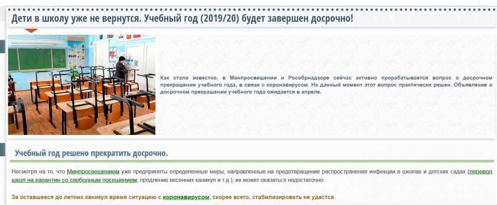 МВД по Республике Марий Эл призывает граждан не реагировать на фейковые новости. Так, в социальных сетях и мессенджерах появились информации о том, что «с 25 марта по 12 апреля будет проходить ежедневные патрули по торговым центрам, по выявлению детей и подростков во время проведения профилактических мероприятий», «в целях безопасности будут проводиться рейдовые мероприятия по школам. Если вдруг ребёнок окажется в школе по таким причинам, как дополнительные занятия или кружки, то будут наказаны школы», «учебный год в этом году будет завершён в апреле» и другие аналогичные сообщения.