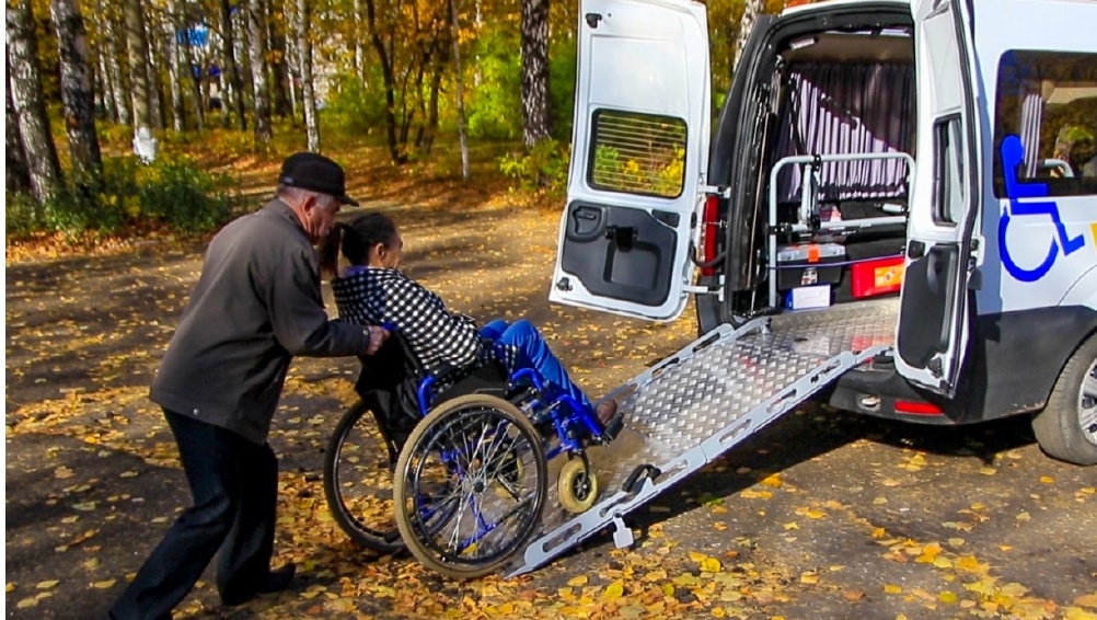 Перевозка осуществляется на сертифицированном, соответствующем ГОСТам автомобиле для перевозки инвалидов «Lada Largus», оборудованном специальным пандусом и внутреннем крепежом.