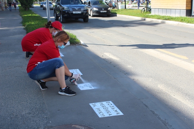 Уже не первый год в Марий Эл перед пешеходными переходами появляются надписи, напоминающие пешеходам, что проезжая часть — это источник повышенной опасности, и подходя к нему нужно быть предельно осторожным. Госавтоинспекторы совместно с членами ОНФ вышли на улицы Йошкар-Олы, чтобы оставить гражданам напоминания о важности соблюдения правил дорожного движения — на центральных улицах города перед выходом на пешеходный переход на тротуаре участниками акции были нанесены надписи, благодаря которым пешеходы станут чаще задумываться о безопасности как своей, так и идущих рядом людей. Трафареты изготовлены для разных категорий граждан: как для родителей, с текстом «Возьми ребёнка за руку», так и для более молодого поколения: «Отвлекись от телефона».