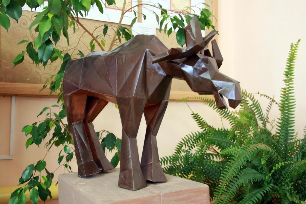 Лось, как символ Йошкар-Олы, по масштабам проделанной работы медведю уступает — в нём около 600 деталей. Дольше всего авторы мучились с объемными ветвистыми рогами. Но когда лесной красавец был покрашен и отлакирован, решили оборудовать для него персональный постамент, на котором появилось юбилейное для Марий Эл число «100».