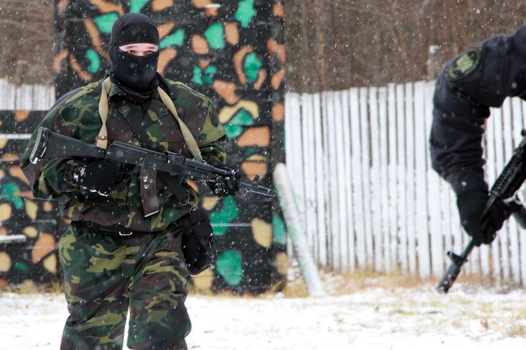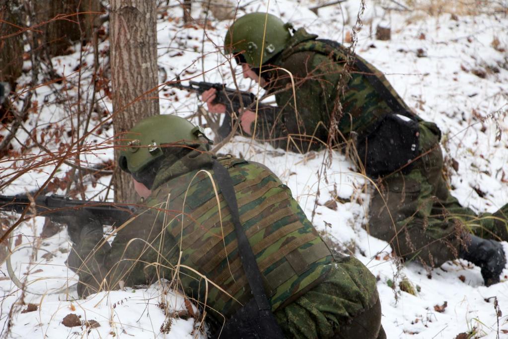 Сегодня новички в полной боевой выкладке вместе со старшими товарищами пробежали марш-бросок по лесной дороге. По ходу движения отряд ожидали различные неожиданности: нападения условных противников, засады, обстрелы и плотная дымовая завеса, потому часть пути «ястребам» пришлось преодолевать в противогазах.