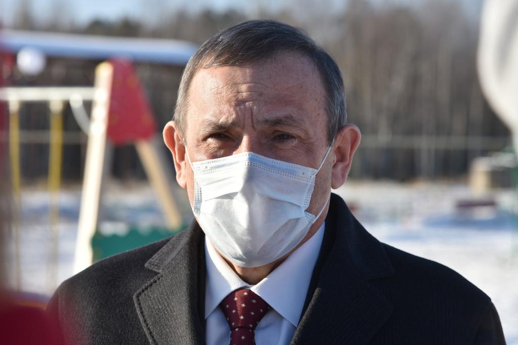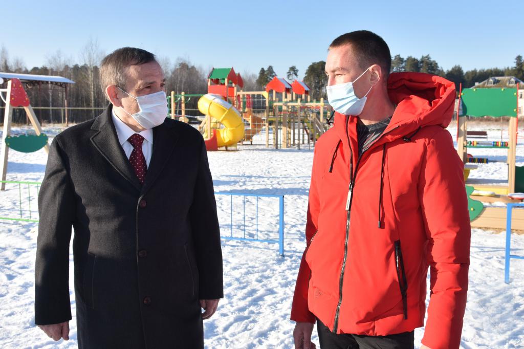 Александр Евстифеев побывал с рабочим визитом в селе Помары Волжского района, где в текущем году проводились работы по строительству новой детской площадки.