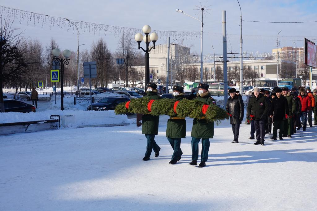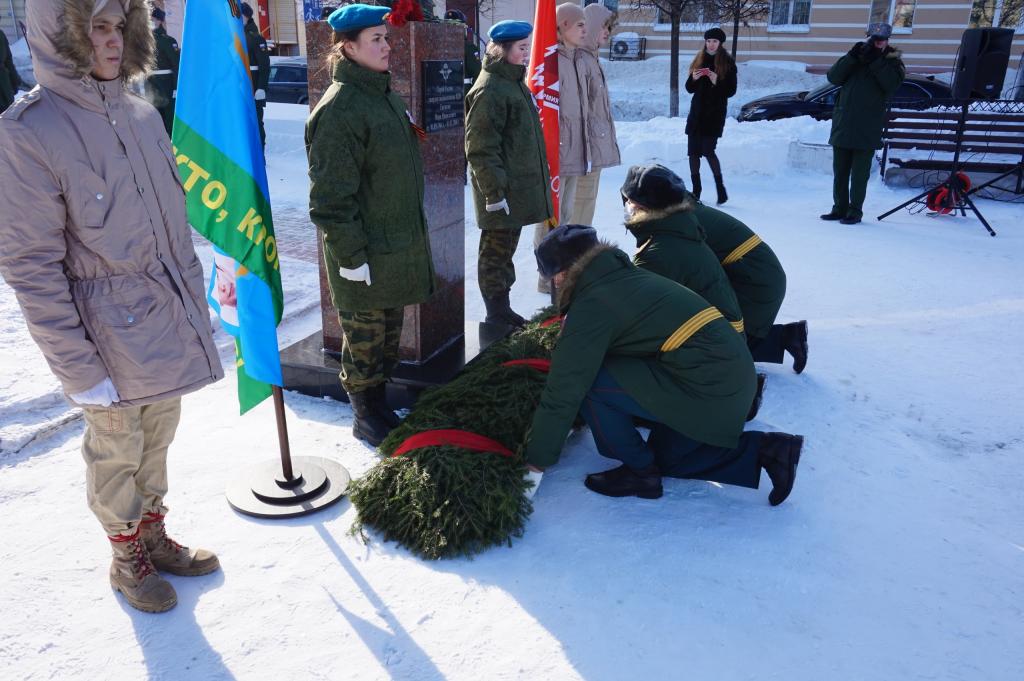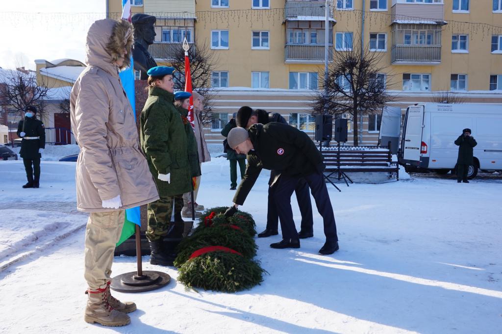 Участники мероприятия почтили память бойцов 6 роты и её командира минутой молчания, и в знак благодарности и скорби возложили цветы к бюсту Марка Евтюхина.