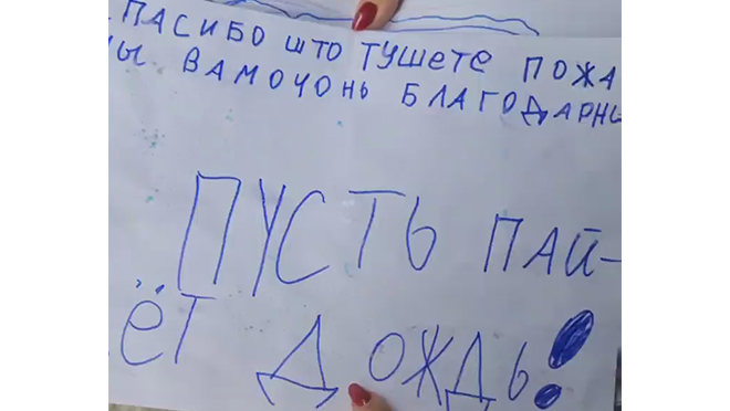 В поддержку огнеборцев ребята присылают массу рисунков с пожеланиями скорейшего завершения тушения.