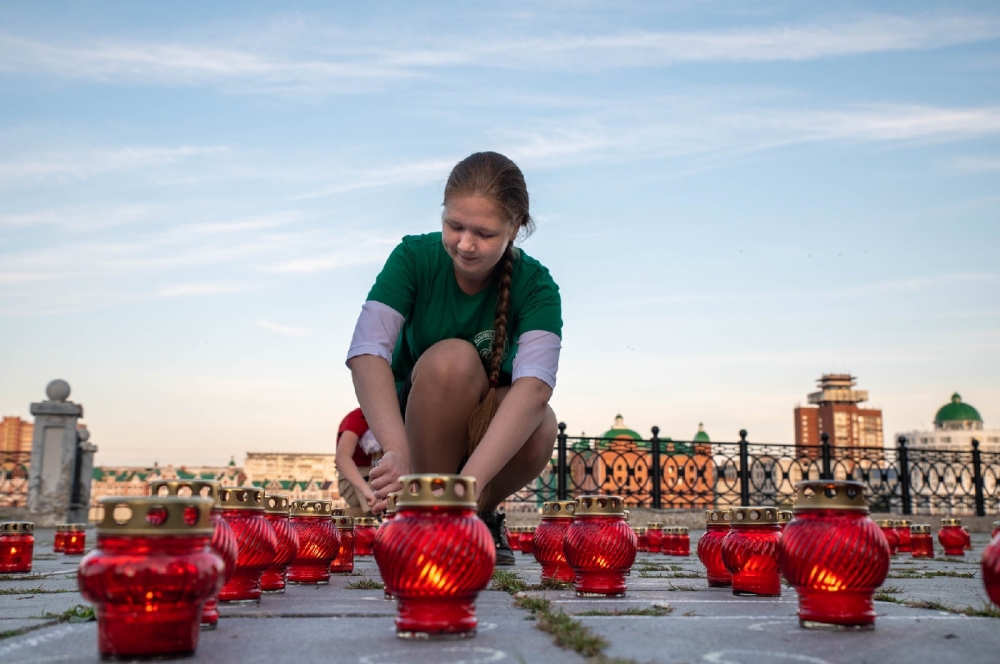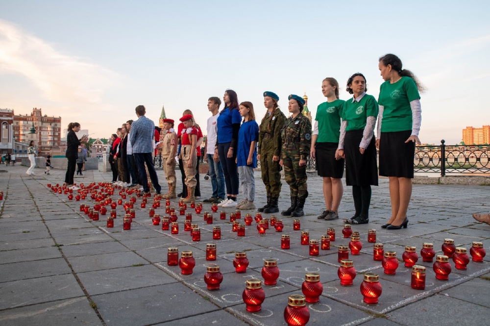 По этому поводу на набережной Йошкар-Олы зажгли сегодня множество лампадок. На съёмки ролика собрались молодые люди из разных объединений города.
