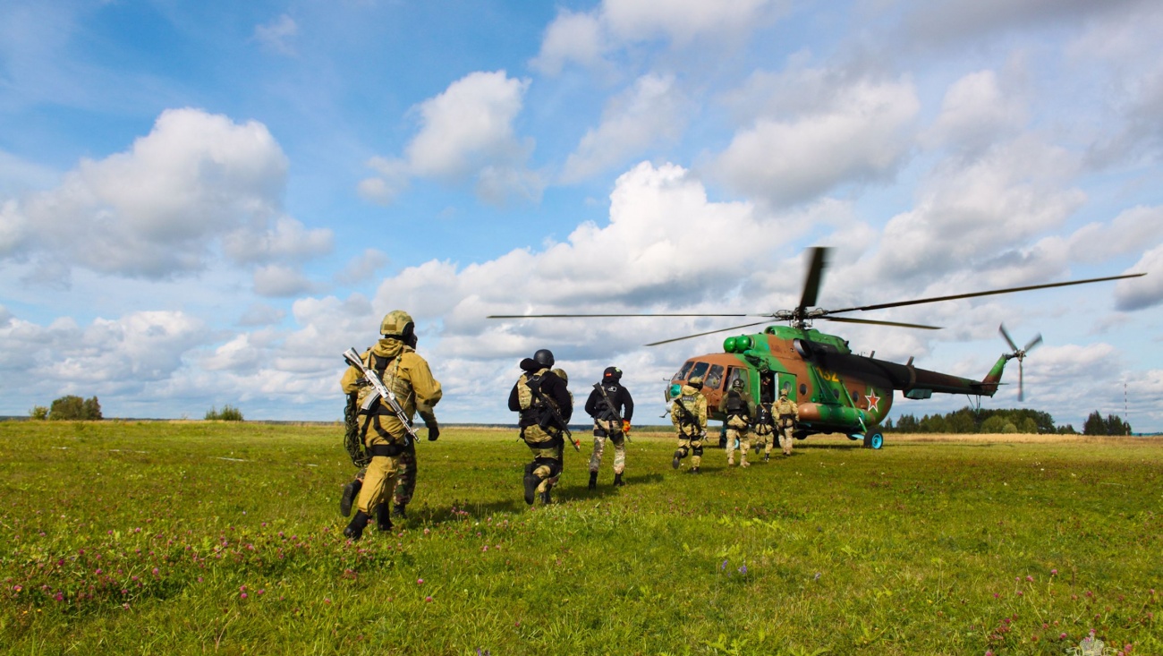 Во время практических занятий бойцы спецподразделений в полной боевой экипировке отработали нормативы по десантированию при зависании вертолета Ми-8 на различных от земли расстояниях и оперативное рассредоточение на площадке приземления.