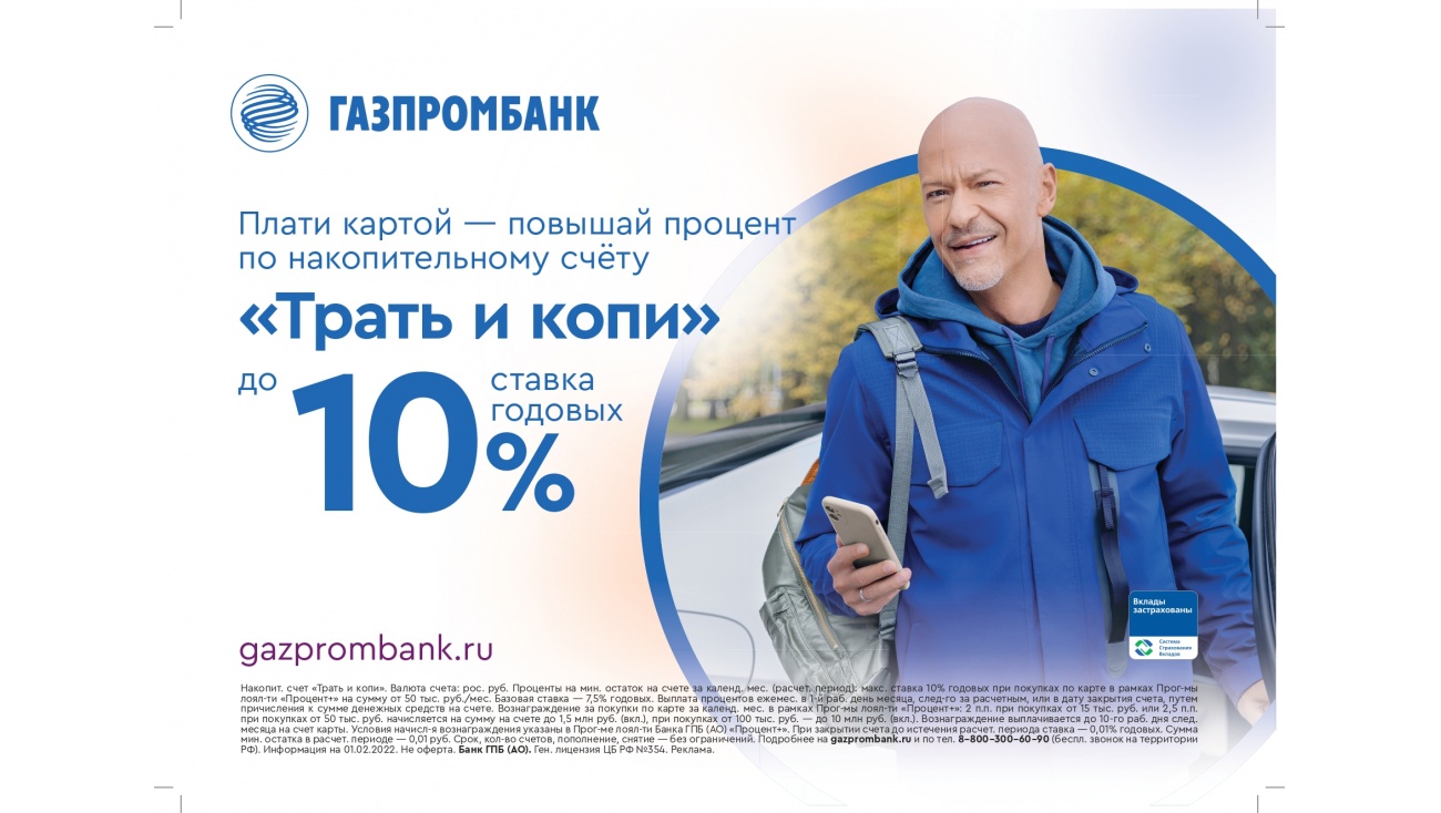 По счету «Трать и копи», который в первую очередь интересен клиентам с активными покупками по карте Газпромбанка, максимальная ставка теперь составляет 10% годовых. Для получения такой доходности нужно подключить программу лояльности «Процент+» и ежемесячно тратить — для получения 10% годовых от 50 000 рублей, для получения 9,5% годовых — от 15 000 до 49 999 рублей. Надбавка за покупки в рамках «Процент+» выплачивается на остаток до 1,5 млн рублей. При ежемесячных тратах от 100 000 рублей, клиент может получить максимальную доходность на остаток до 10 млн рублей.