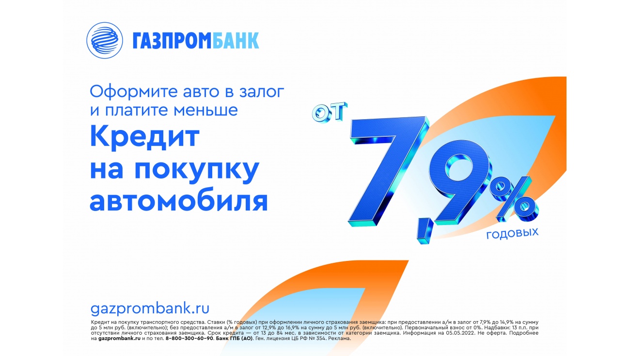 Газпромбанк второй раз за месяц улучшил условия по потребительским кредитам на покупку автомобиля и на любые цели (под залог авто).