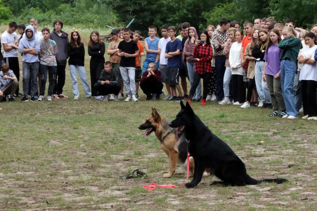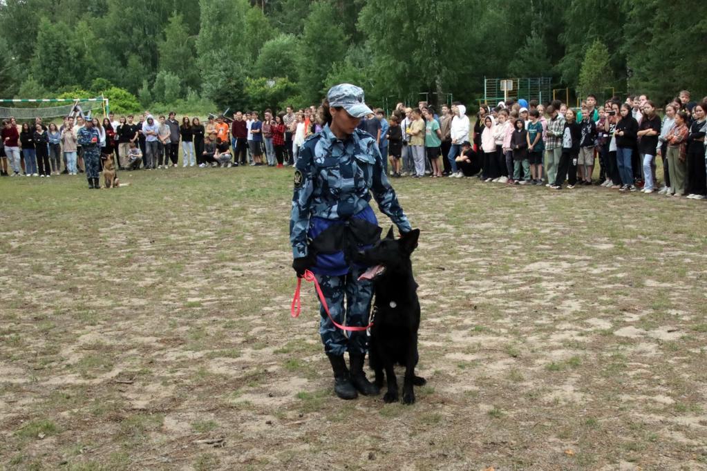 Кинологи УФСИН организовали для ребят показательное занятие, продемонстрировав, на что способны собаки, несущие службу в исправительных учреждениях республики. Мастер-класс провели сотрудники ИК-6 Ксения Фомченко и Николай Иванов со своими четвероногими подопечными. С блеском исполнив все команды основного курса дрессировки (даже те, которые подавались без голоса, только жестами), Джесси и Блэк показали, как они справляются с задачами по поиску запрещенных предметов. Учитывая, что Джесси является чемпионом ФСИН России по этому «собачьему виду спорта», всё, старательно спрятанное детьми, было найдено и обозначено в самые короткие сроки.