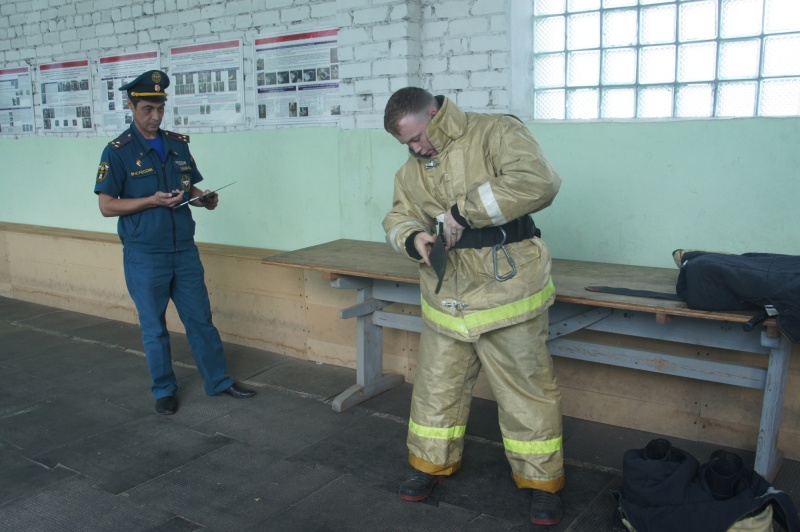 Можно сказать, лейтенантов внутренней службы проверили на прочность. В качестве испытаний они должны были на скорость надеть боевую одежду пожарного, связать двойную спасательную петлю, сдать нормы по подтягиванию и челночному бегу.