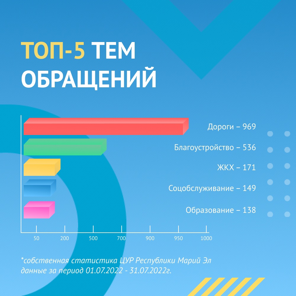 ЦУР подвело итоги работы с сообщениями жителей Марий Эл в социальных сетях за июль.