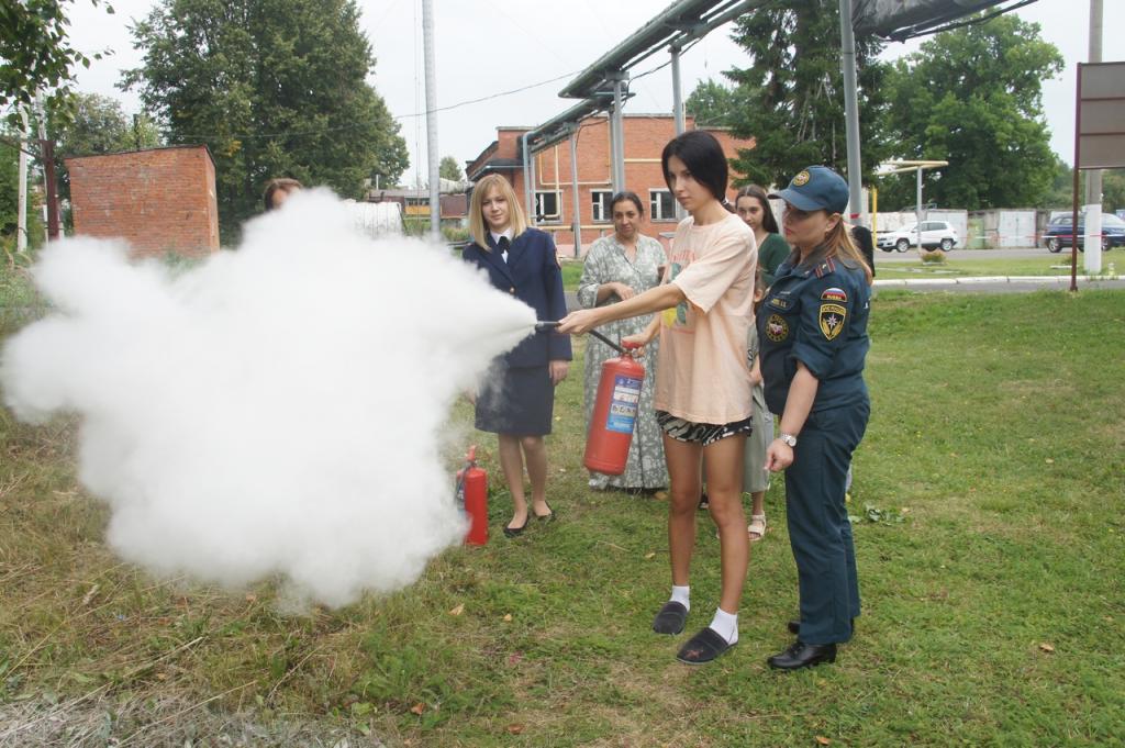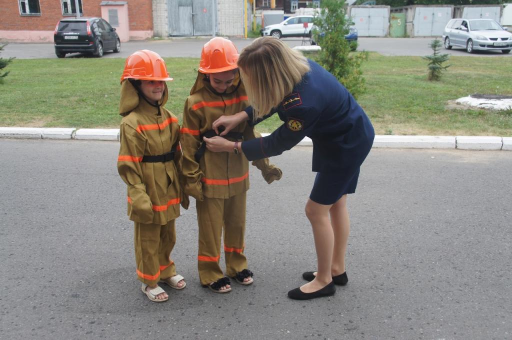 Кроме этого, самые маленькие смогли примерить боевую одежду пожарного, специально сшитую по детским размерам. Каждый — и взрослый, и ребенок — получил возможность ликвидировать условное возгорание при помощи огнетушителя.