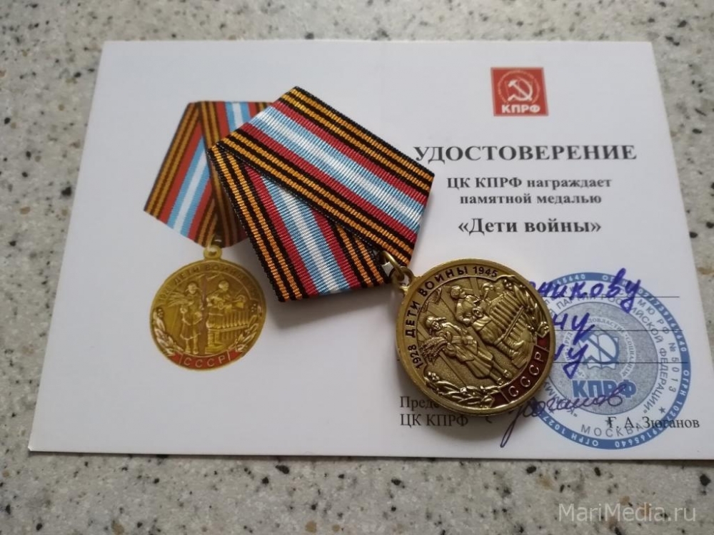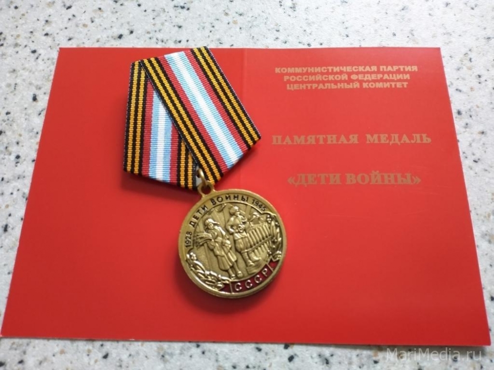 В региональном отделении КПРФ жительнице Йошкар-Олы Валентине Сергеевне В. 1937 года рождения вручили медаль «Дети войны». Медаль положена россиянам 1928-1945 года рождения.