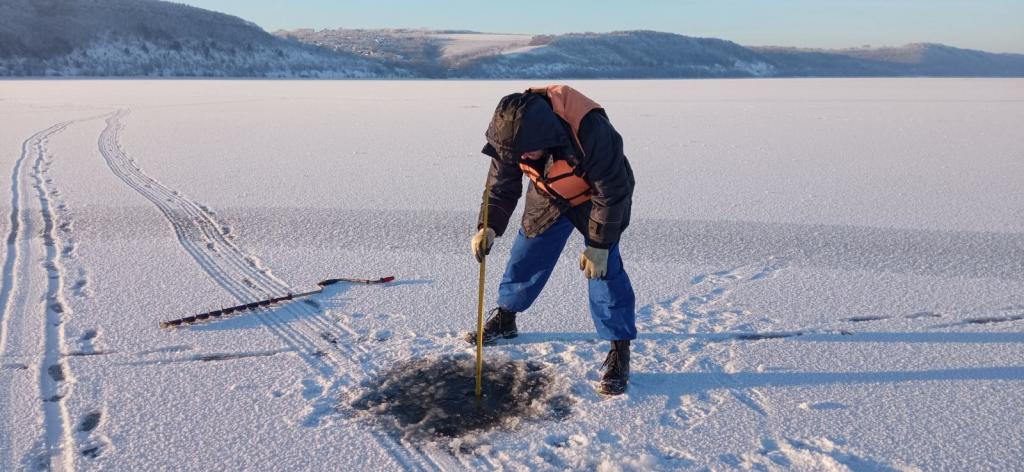 В рамках месячника безопасности на водных объектах в период ледостава спасатели Марийской аварийно-спасательной службы проводят замеры толщины льда на водоёмах республики и профилактическую работу с населением: расклеивают листовки, раздают памятки и проводят беседы по безопасному поведению на водных объектах в осенне-зимний период.
