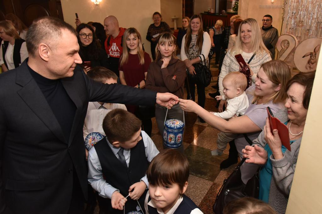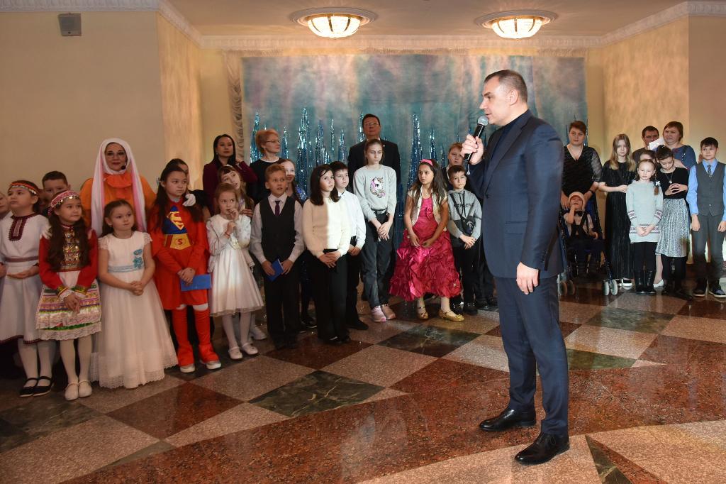 Юрий Викторович поздравил маленьких жителей с долгожданным новогодним праздником и отметил, что их отцы — настоящие герои и патриоты России.