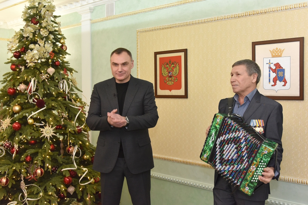 Желание пенсионера Юрия Тупицына Глава Марий Эл выбрал, приняв участие в виртуальной «Ёлке желаний». Ему Юрий Зайцев вручил гармонь. Юрий Тупицын поблагодарил главу региона и даже сыграл на новом инструменте.