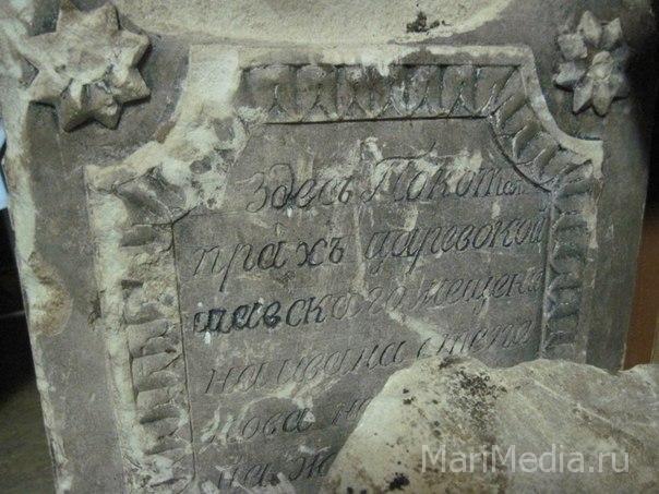 Сегодня днем найдено еще одно надгробие. Судя по всему, это памятник представителю известнейшей в Царевококшайске купеческой династии Пчелиных.