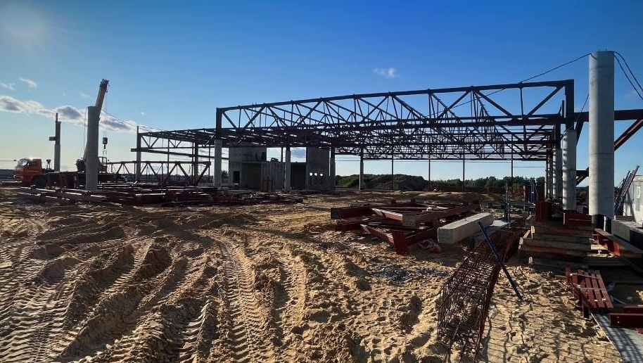 Сейчас выполняется устройство наружных инженерных сетей и монтаж сборных металлоконструкций. Продолжаются работы по устройству сетей дождевой канализации. В ближайшее время строители приступят к монтажу покрытий и наружных стен, сообщает Минстрой России.