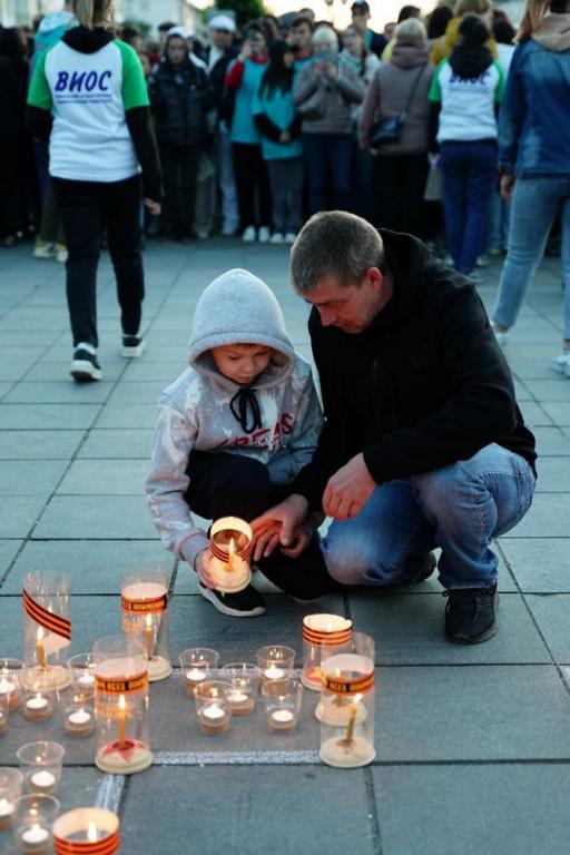К 20 часам мотопробег вернулся на территорию ансамбля Воинской Славы в Йошкар-Оле. Здесь собрались ветераны боевых действий, представители органов власти республики и города, религиозных конфессий, предприятий и организаций, учебных заведений. Собравшиеся зажгли свечи и лампады в память о всех погибших в годы войны. Из двух тысяч свечей были выложены слова «Йошкар-Ола помнит» и силуэт «Голубя мира».