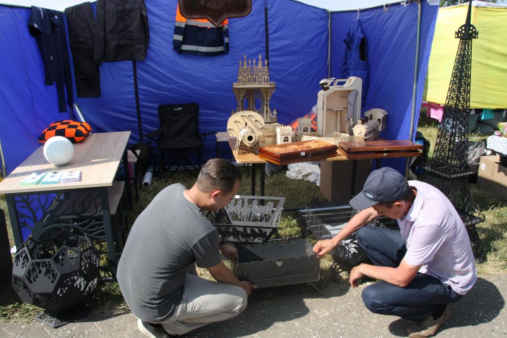 Кроме сувениров в палатке марийского УФСИН можно было приобрести модели переносных и стационарных мангалов в наборе с шампурами, универсальные печки-буржуйки, костровые чаши разной формы, столы и табуреты, изготовленные в исправительной колонии № 6. Также была представлена швейная продукция и волейбольные мячи, изготовленные в исправительной колонии № 4.