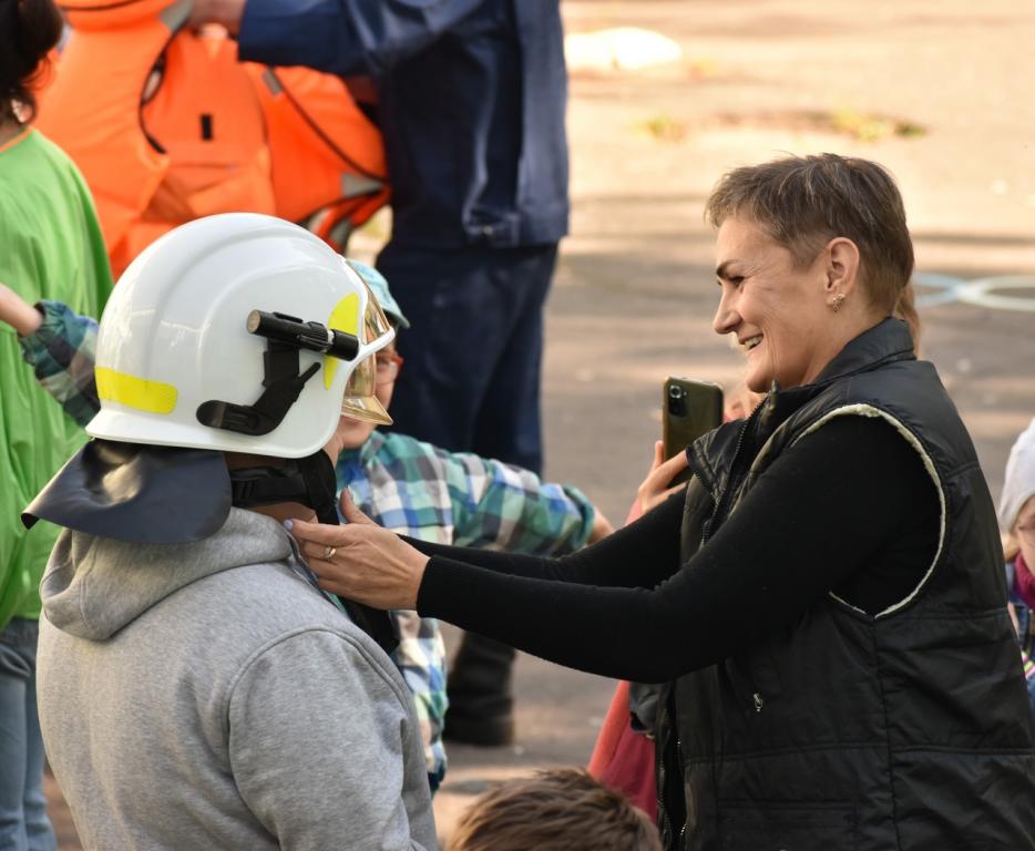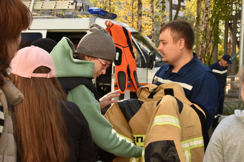 По окончании беседы ребята посмотрели аварийно-спасательную автомашину и находящееся в ней снаряжение и оборудование. В заключение дети поучаствовали в игровой эстафете.