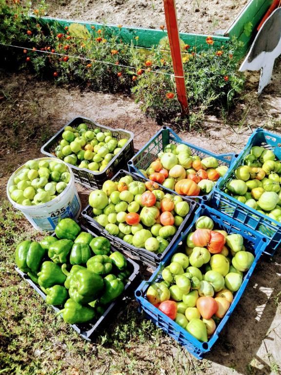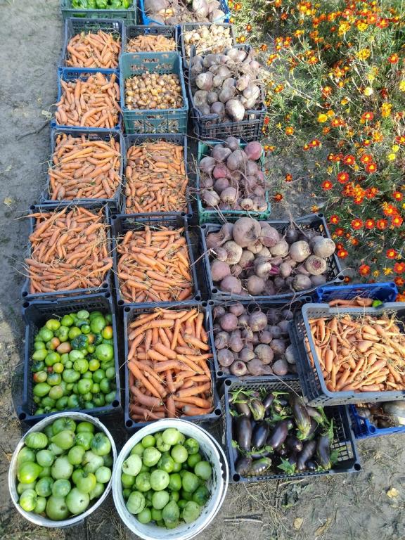 Помидоры, кабачки, перец, морковь, свекла, лук, баклажаны, тыква, подсолнечник с огорода особенно вкусны и полезны. На этой недели урожай с грядок собрали, но в теплицах ещё растут помидоры и огурцы. Так что ребята ещё долго будут лакомиться вкусными и спелыми плодами.