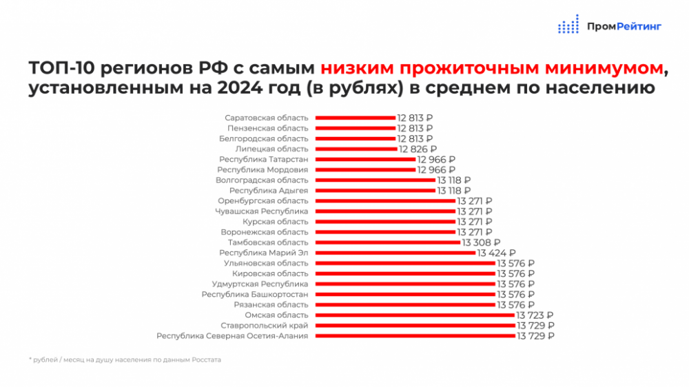 Портал ПромРейтинг, опираясь на данные Росстата, опубликовал данные о прожиточном минимуме населения по стране на 2024 год.