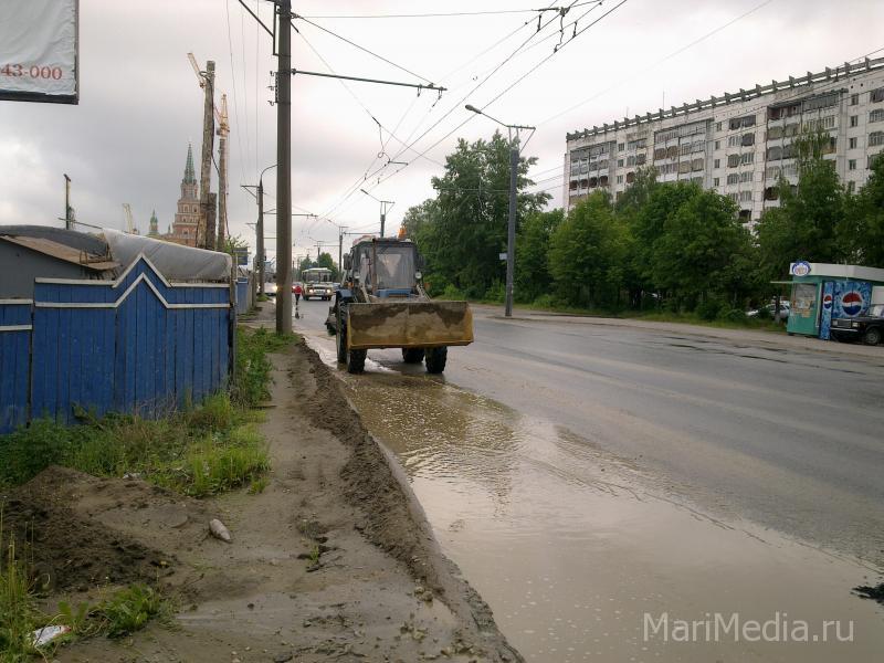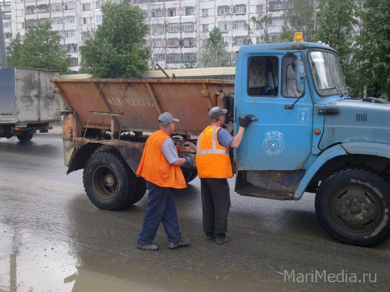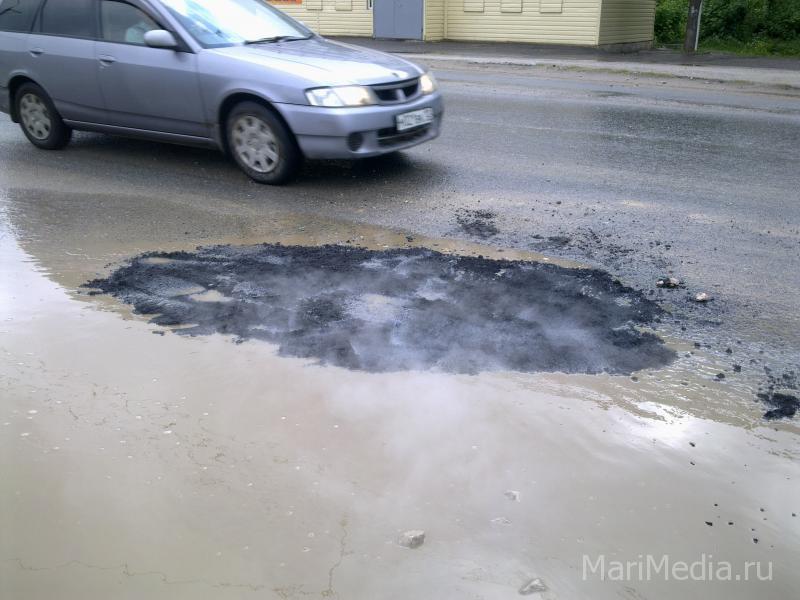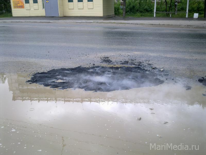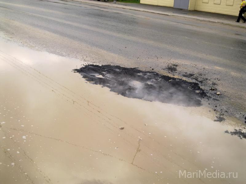 Сегодня утром проходящие и проезжающие по улице Эшкинина горожане недоумевали: в дождь, в лужи дорожники аккуратно сбрасывали с самосвала смесь, призванную потом стать твердым асфальтобетонным покрытием. Когда особенно любопытные попытались сфотографировать этот процесс, ремонтники собрали лопаты в машину с атрибутикой МУП «Йошкар-оладорстрой» и уехали. Асфальт остался дымиться в лужах.