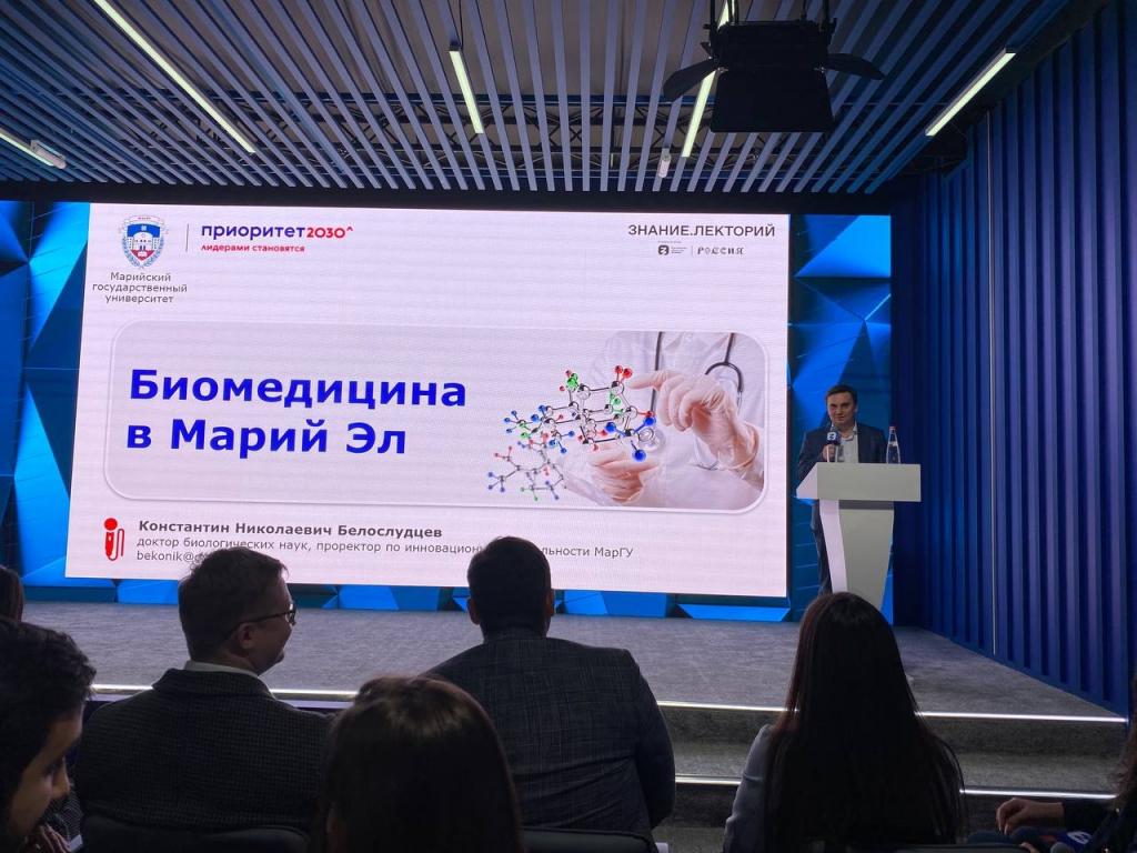Образовательная лекция проректора по инновационной деятельности МарГУ Константина Белослудцева на тему «Биомедицина в Марий Эл: жизнь под контролем» стала логичным завершением выставки «Россия» для студентов Марийского государственного университета.