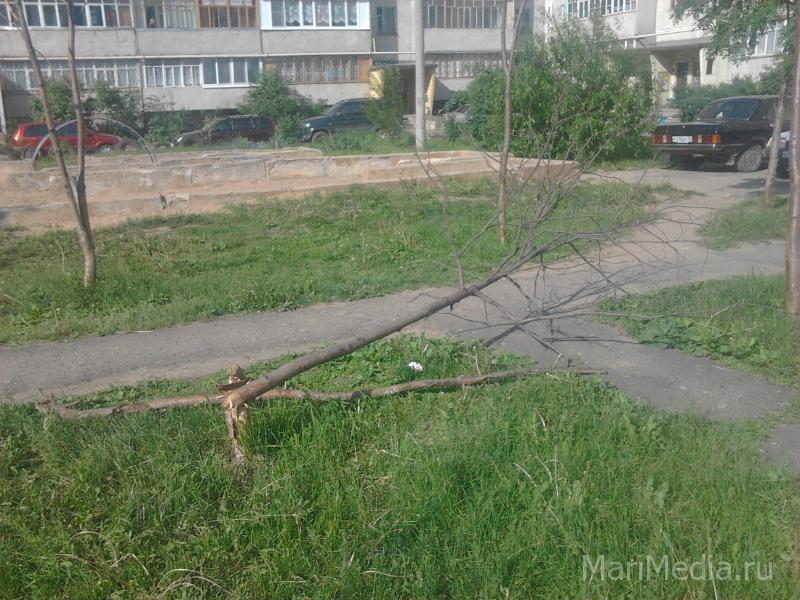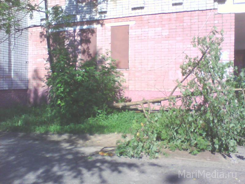 Накануне действительно на город обрушился шквалистый ветер 13-18 м/с и ливень (http://www.12.mchs.gov.ru/news/detail.php?news=15709 ), не обошлось без грозы и града. В считанные минуты вода поднялась до критической отметки, и встали троллейбусы. Напомним, технические характеристики транспортных средств не позволяют им передвигаться по воде, если её уровень превышает 160 мм. Не выдерживали порывов ветра не только высохшие деревья, но и молодые. Ливень вымыл цветы, впервые высаженные в этом году в декорированных корзинах на придорожных городских клумбах (кольцо у Витаминного завода). Сегодня специалисты МУП «Город» были вынуждены отправиться восстанавливать цветочные композиции. По заявкам домоуправлений будут вывозиться сломанные деревья.