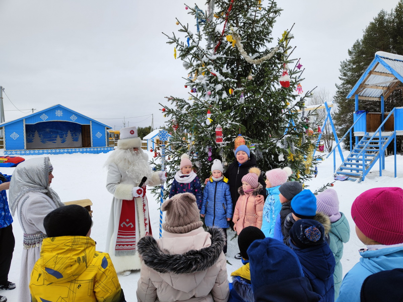 Ребята приехали в резиденцию к зимнему волшебнику в село Кукнур. Здесь их ждала праздничная программа с играми, хороводом вокруг ёлки, путешествие по сказочной тропе, где их встречали различные сказочные персонажи.